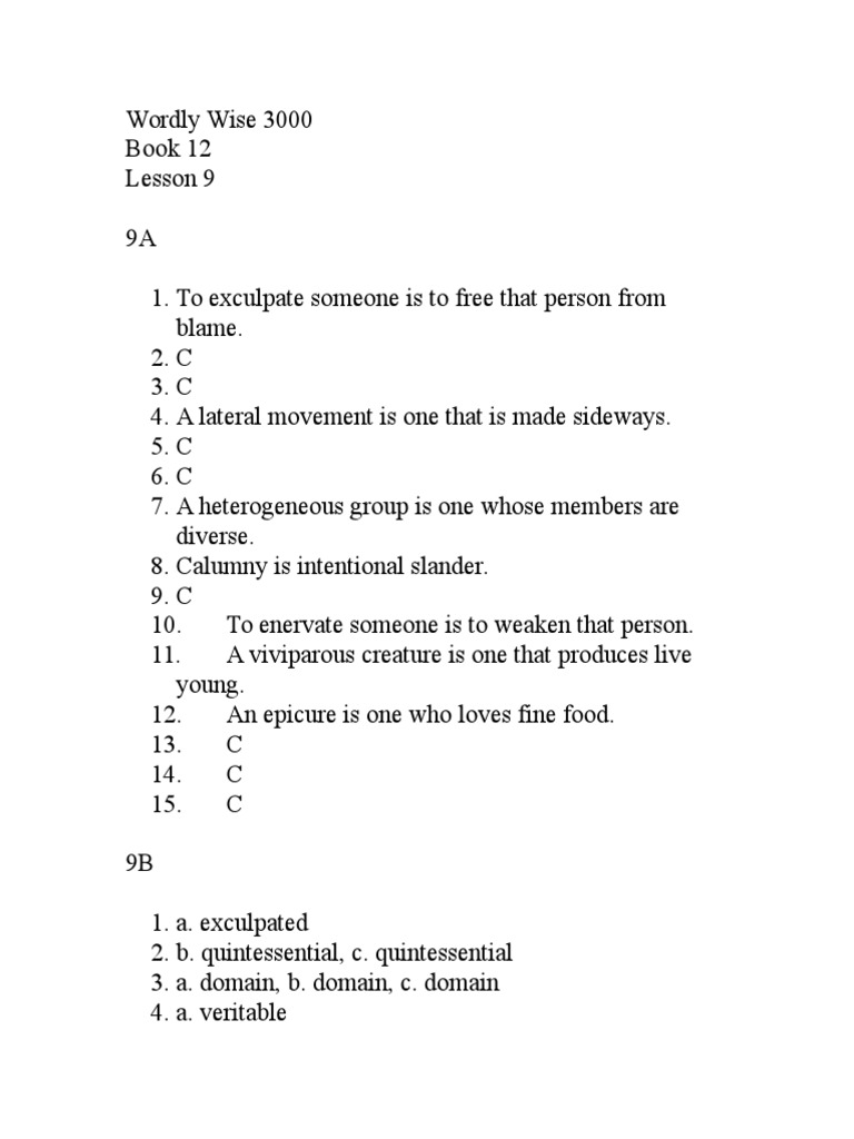 English 12 Lesson 12 Answer Key Doc Wordly Wise 3000 Book 12 Lesson 12 12a 1 C 2 A Salutary Treatment Is One That Is Healthful 3 C 4 C 5 A Course Hero